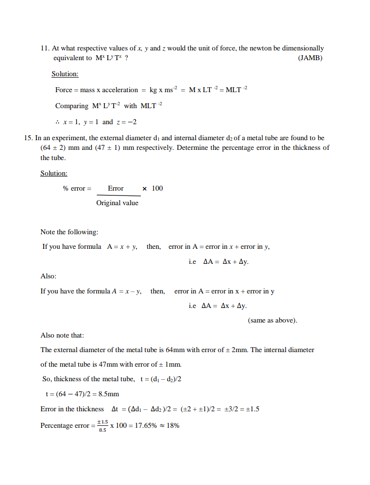 In every topic in each chapter of the book, all possible calculations a student is likely to come across are solved as examples with detailed explanations. Some of the solved calculations are actually past Physics questions from WAEC, NECO, JAMB, IGCSE and Cambridge AS Level.